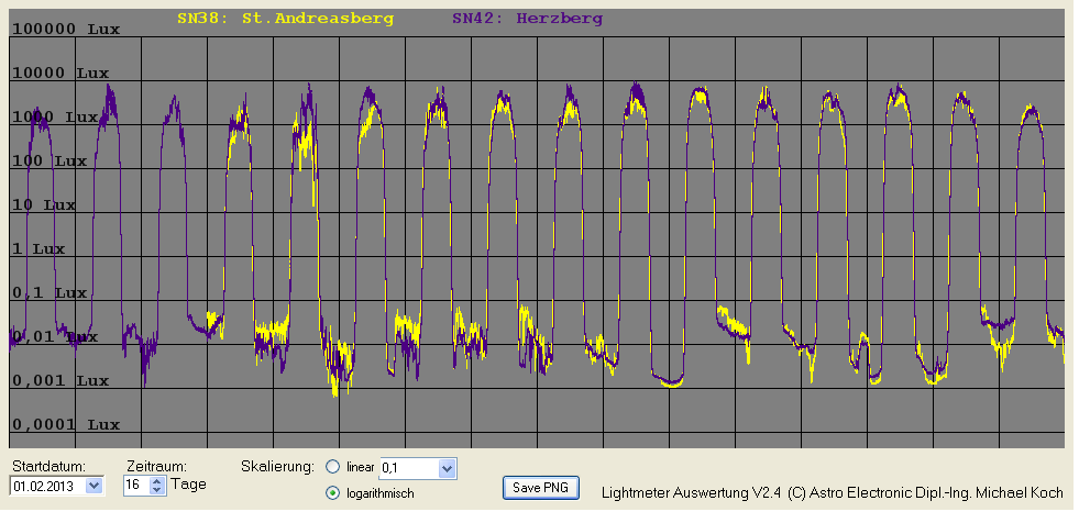 der Himmelshelligkeit vorläufig an dieser Stelle.