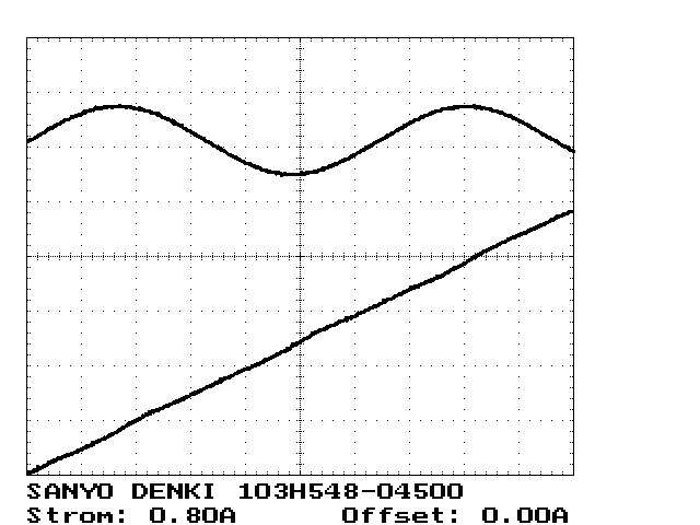 The motor runs smoother than in half step mode but vibrations are not removed completely. A further improvement is possible by a special modification of the current waveform. This is implemented since software version 1.14. For example with this motor the vibrations can be reduced by 50% (not displayed here). |